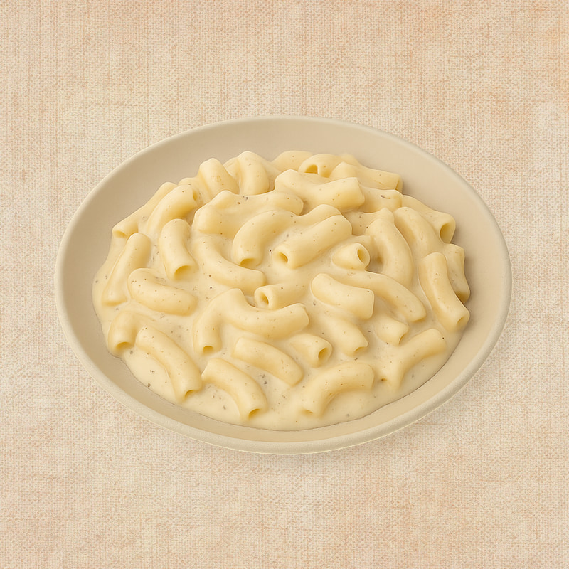 Macarrones (50%) (sémola de trigo duro), Salsa 4 Quesos (50%) (mezcla de quesos (azul, emmental, grana padano, arzua), nata (nata ligera, almidón modificado de maíz, emulgente (E-471) y estabilizantes (E-415, E-451, E-460 y E-466), leche, mantequilla, sal, pimienta negra].