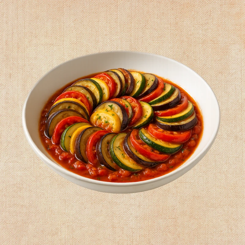 Berenjena (20%), calabacín (20%), pimiento rojo (15%), pimiento verde (15%), cebolla (10%), ajo (5%), tomate triturado (tomate, sal, acidulante: ácido cítrico) (15%), aceite de oliva virgen extra, tomillo, romero, hoja de laurel, sal, pimienta.