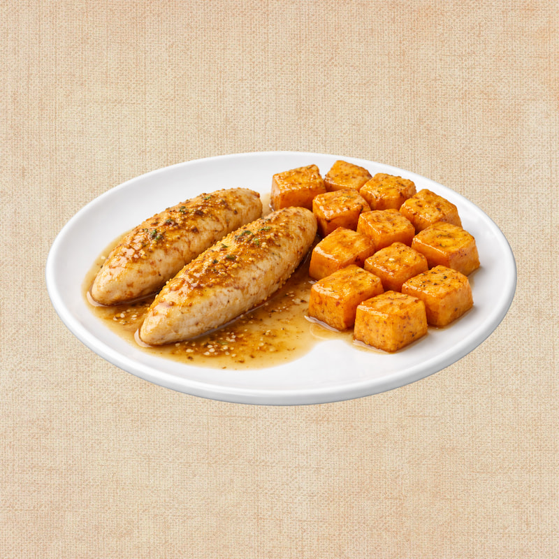 / Solomillos de Pollo con Mostaza y Miel y Calabaza Asada